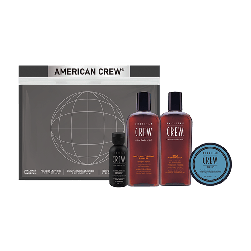 The American Crew Grooming Travel Kit is the perfect set for men who want to stay well-groomed no matter where they are. This kit includes four essential products in convenient travel sizes, ensuring that you can always maintain your style and grooming whether you're on a business trip or vacation. With a 100ml bottle of American Crew 3-in-1 Shampoo, Conditioner, and Body Wash, you can easily and conveniently cleanse both your hair and body. This versatile formula is perfect for saving space in your toiletry bag and allows you to maintain a fresh and clean feeling wherever you are. The next component in this kit is a 100ml bottle of American Crew Precision Shave Gel. This gel provides a close and comfortable shave while protecting your skin from irritation and redness. With this travel size, you can maintain your smooth and well-groomed skin no matter where you are. The Grooming Travel Kit also includes a 50ml bottle of American Crew Post-Shave Cooling Lotion. This lotion is specially designed to soothe and moisturize your skin after shaving, leaving it soft and well-nourished. This travel size is ideal for maintaining your skincare routine even when you're on the go. Finally, this kit contains a 50g tin of American Crew Fiber. This styling paste allows you to create a flexible and long-lasting look, whether you want to style your hair for a formal event or a casual day. With this travel size, you can always have the perfect styling product at your fingertips. The American Crew Grooming Travel Kit is the ultimate set for men who want to maintain their style and grooming no matter where they are. With these convenient travel sizes, you can always be well-groomed and confident whether you're on the move or on vacation. Treat yourself to this kit and enjoy the convenience and value it offers.