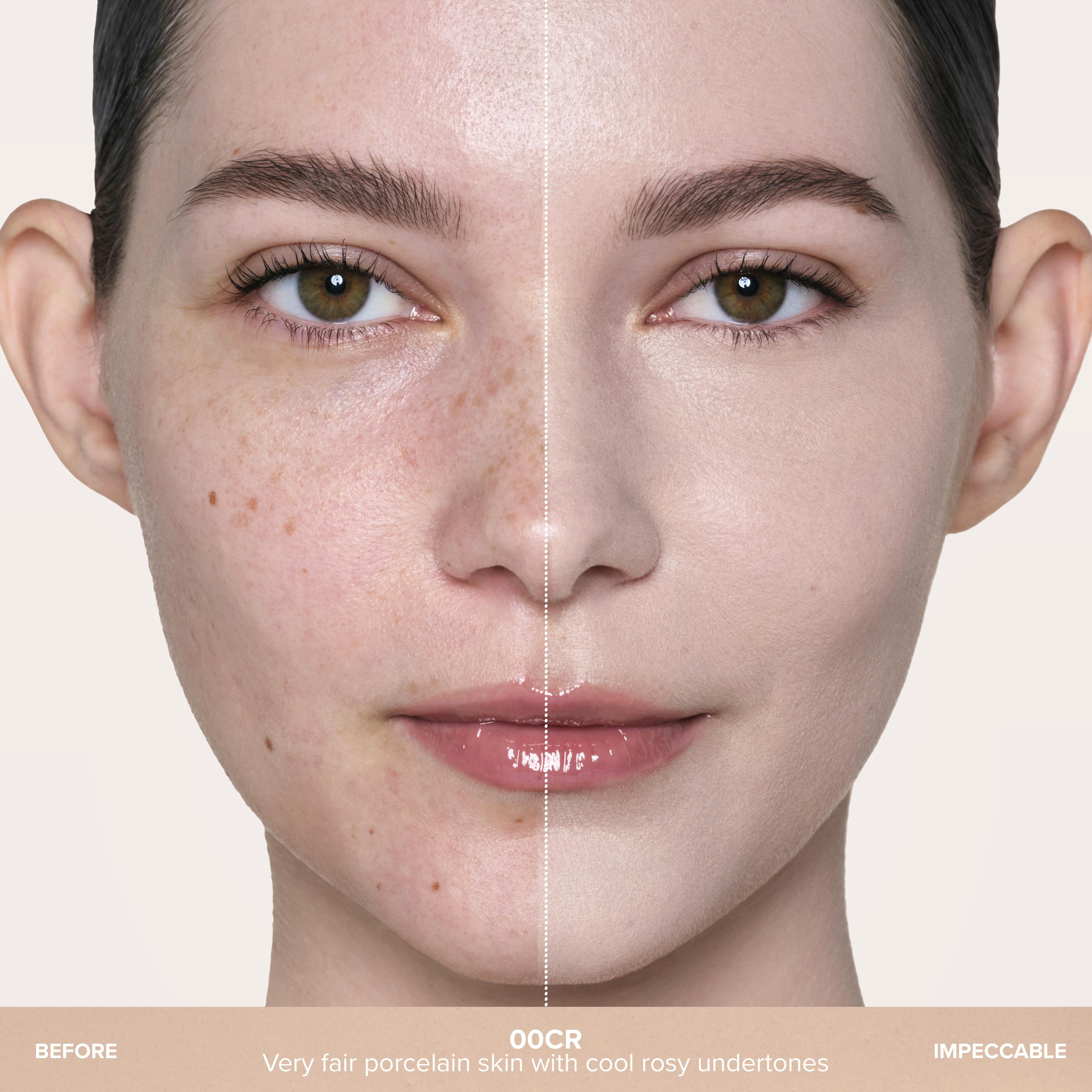 Impeccable Foundation: a medium to full-coverage, long-wearing formula that blurs pores, fine lines and wrinkles for up to 12 hours. Powered by Precision Blur Technology, this hydrating velvet-matte foundation features Hyaluronic Acid for a smooth, flawless finish and second-skin feel.