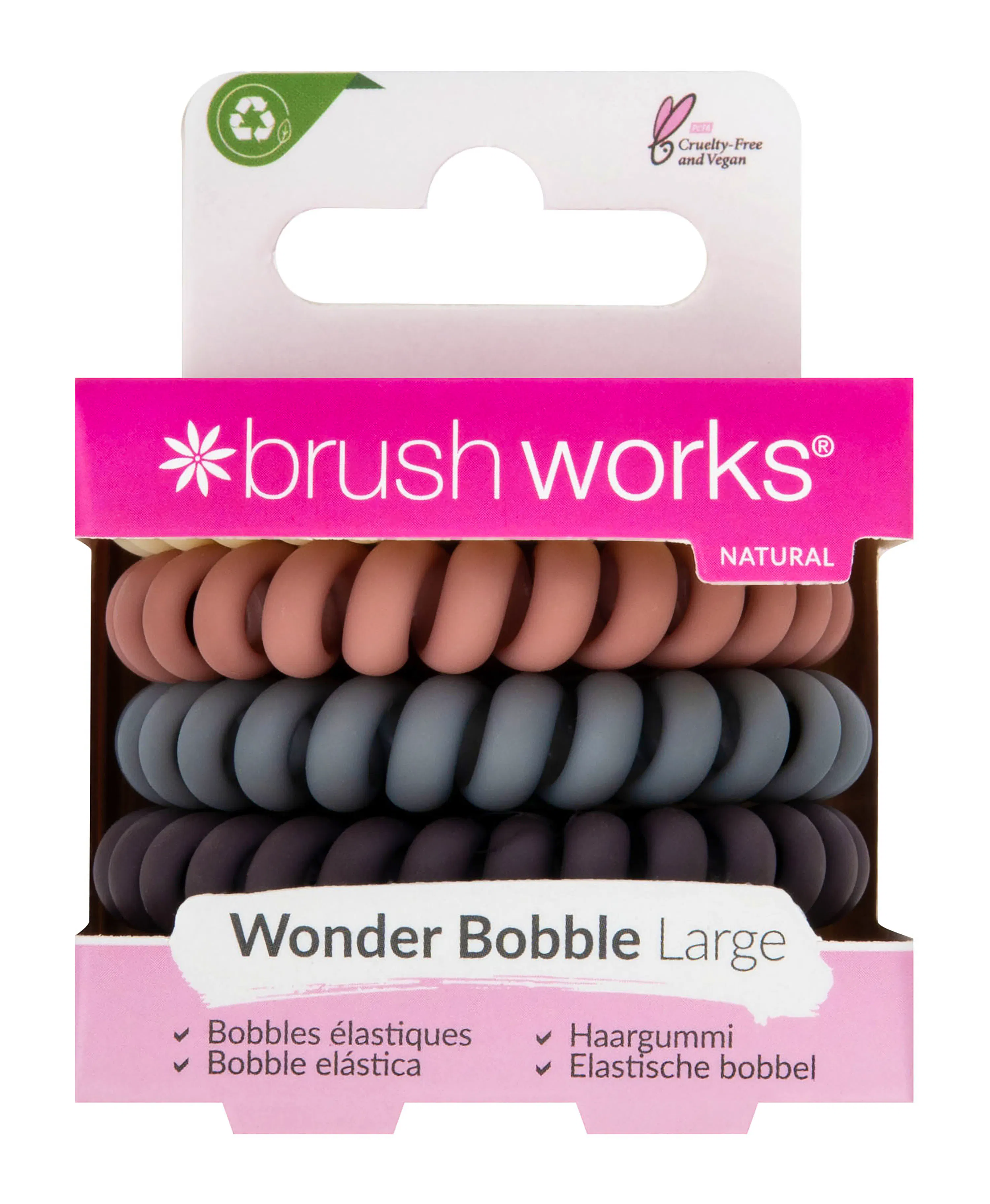 The Wonder Bobble Large Natural from the brand brushworks is an amazing product that will revolutionize your hair routine. With this pack, you get a total of 5 of these wonderful bobbles. The Wonder Bobble Large Natural is designed to give you a durable and comfortable hairstyle. It's perfect for creating beautiful and elegant updos, ponytails, or simply keeping your hair in place throughout the day. With the Wonder Bobble Large Natural, you can easily and quickly style your hair without causing any damage. It's made of a soft and flexible material that doesn't strain or leave marks on your hair. You can wear it all day without feeling any discomfort or irritation. This pack of 5 bobbles allows you to have one for every occasion. You can keep one in your bag, in the car, or at the office, so you're always ready to style your hair whenever you need to. With the Wonder Bobble Large Natural, you not only get a practical and functional product, but also great value for your money. You can save time and energy styling your hair while maintaining a beautiful and professional look all day long. Do yourself a favor and try the Wonder Bobble Large Natural from brushworks. You won't regret it!