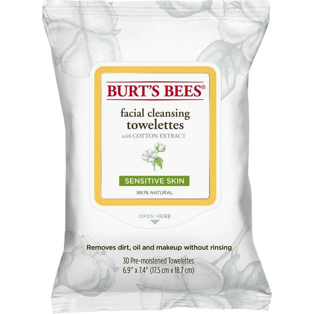 Burt's Bees Facial Cleansing Towelettes Cotton Extract Cleansing Wipes 30 pcs.