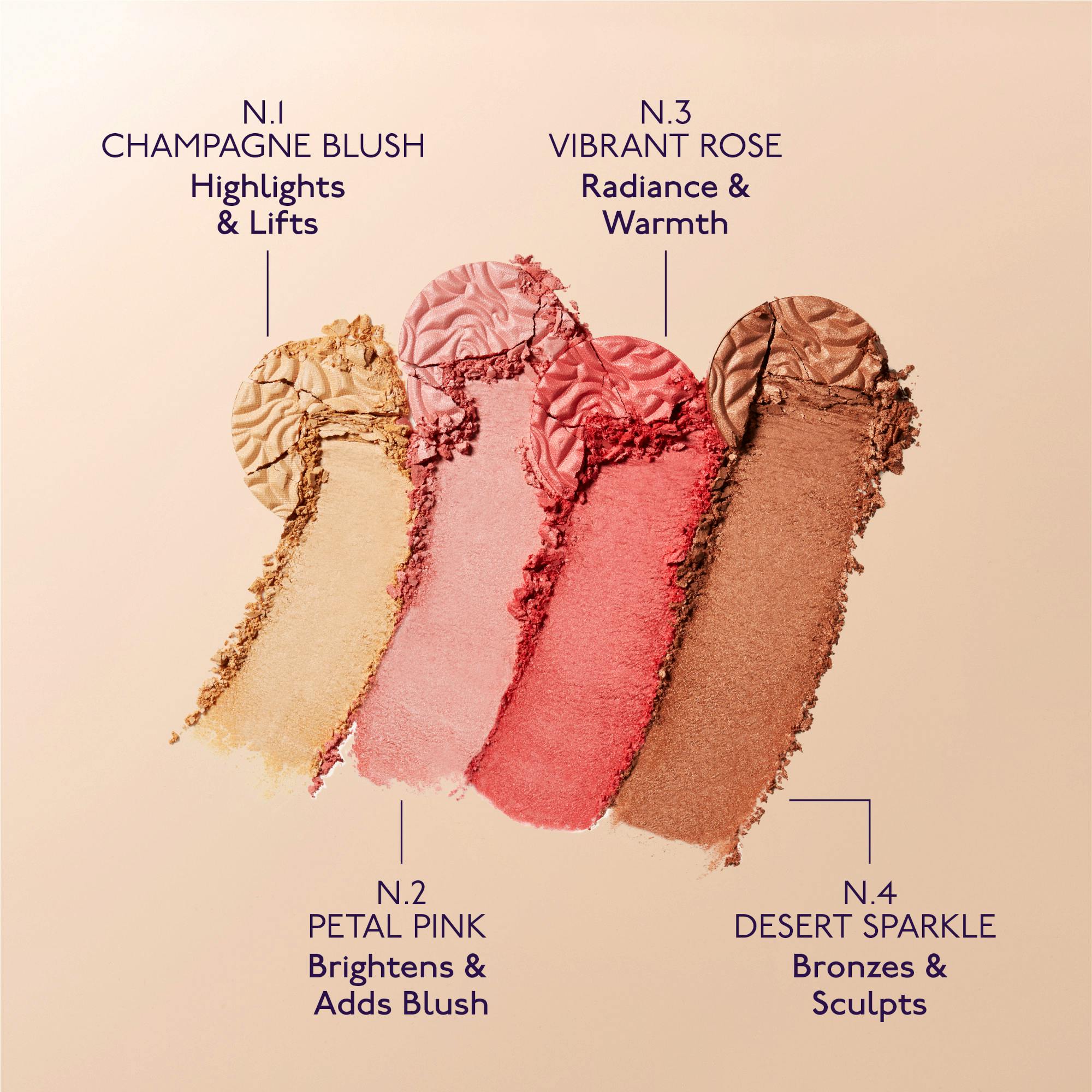 N°1 Champagne blush – the illuminating pearl shade highlights high points of complexion.