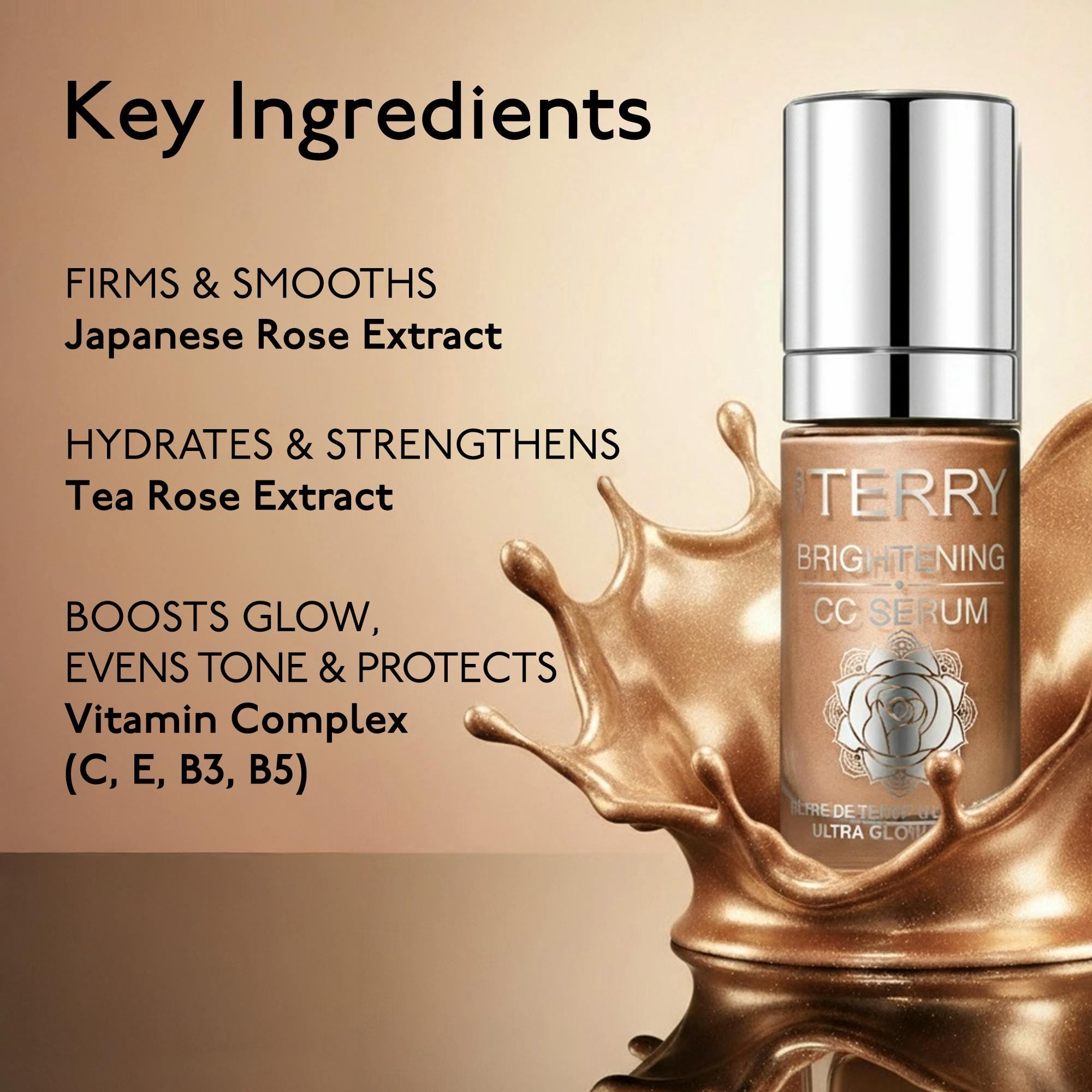 Its ultra-lightweight, fluid texture melts seamlessly into the skin, instantly correcting and illuminating for a naturally luminous, perfected finish. Day after day, skin appears firmer, smoother and visibly more radiant. Suitable for all skin types and designed to adapt to any routine, Brightening CC Serum is the ultimate hybrid essential, uniting skincare and makeup for timeless radiance.