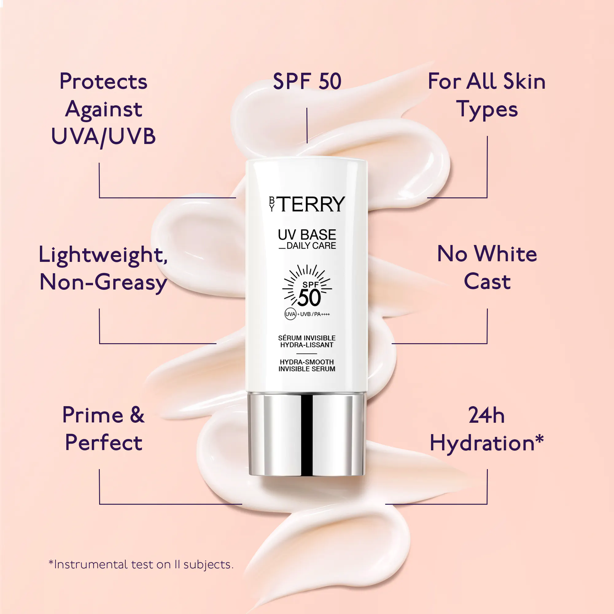 The lightweight, non-greasy cream-gel texture guarantees seamless layering with makeup, free from pilling. Whether worn alone for a soft-focus, radiant glow or as the first step in your beauty routine, this invisible formula perfects and protects without heaviness or white cast. Suitable for all skin types, it helps protect the skin against signs of aging for a healthier, more resilient complexion.