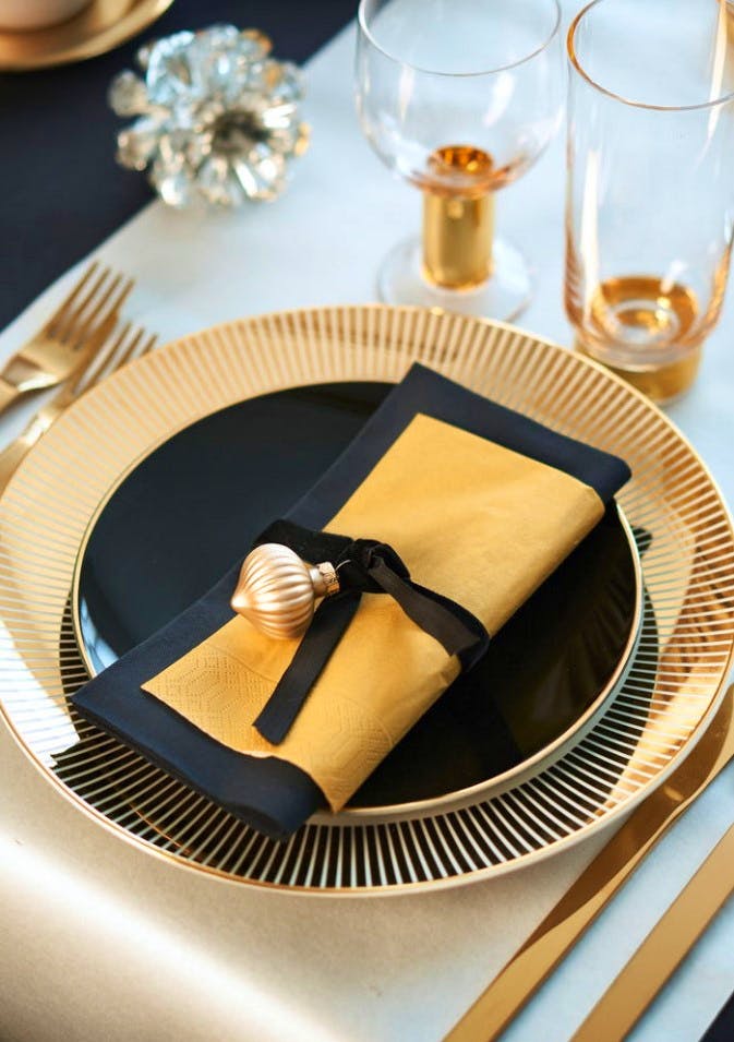 Napkins 33 x 33 cm Gold is an elegant and practical disposable napkin from the brand Duni. This pack contains 20 napkins, perfect for any occasion. With their golden color, these napkins add a touch of luxury to your table. They are made of high quality and have a size of 33 x 33 cm, making them ideal for both formal and informal events. Not only are these napkins stylish, but they are also extremely functional. They are designed to be easy to fold and use, making them perfect for both large dinner parties and intimate gatherings. Whether you are serving a festive dinner or a casual lunch, these napkins will add a touch of elegance to your table. Napkins 33 x 33 cm Gold are perfect for drying your hands, protecting your clothes from spills, or simply decorating your table. They are also ideal for creating a cozy and inviting atmosphere for any occasion. Forget all the hassle of washing and reusing napkins. With Napkins 33 x 33 cm Gold, you can easily and conveniently clean up after the party without compromising on style and elegance. Indulge yourself and your guests with these beautiful and practical napkins. With Napkins 33 x 33 cm Gold, you can create an unforgettable table setting that will impress everyone. Order today and make your next event truly special.