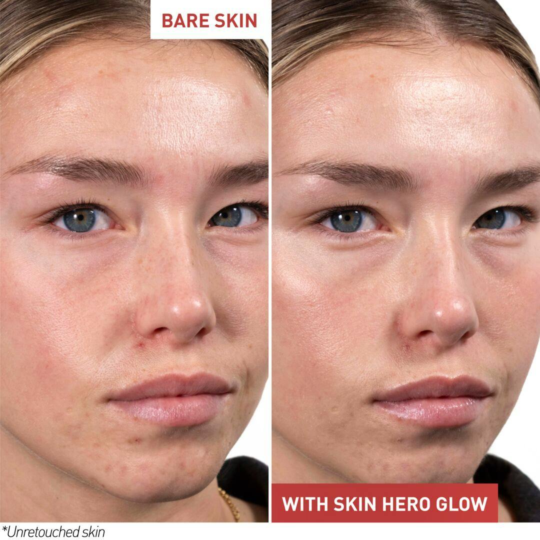 Apply 1 to 2 pumps of SKIN HERO GLOW in the morning. Smooth over your skin, working outward from the centre of the face, for a more beautiful even toned complexion.