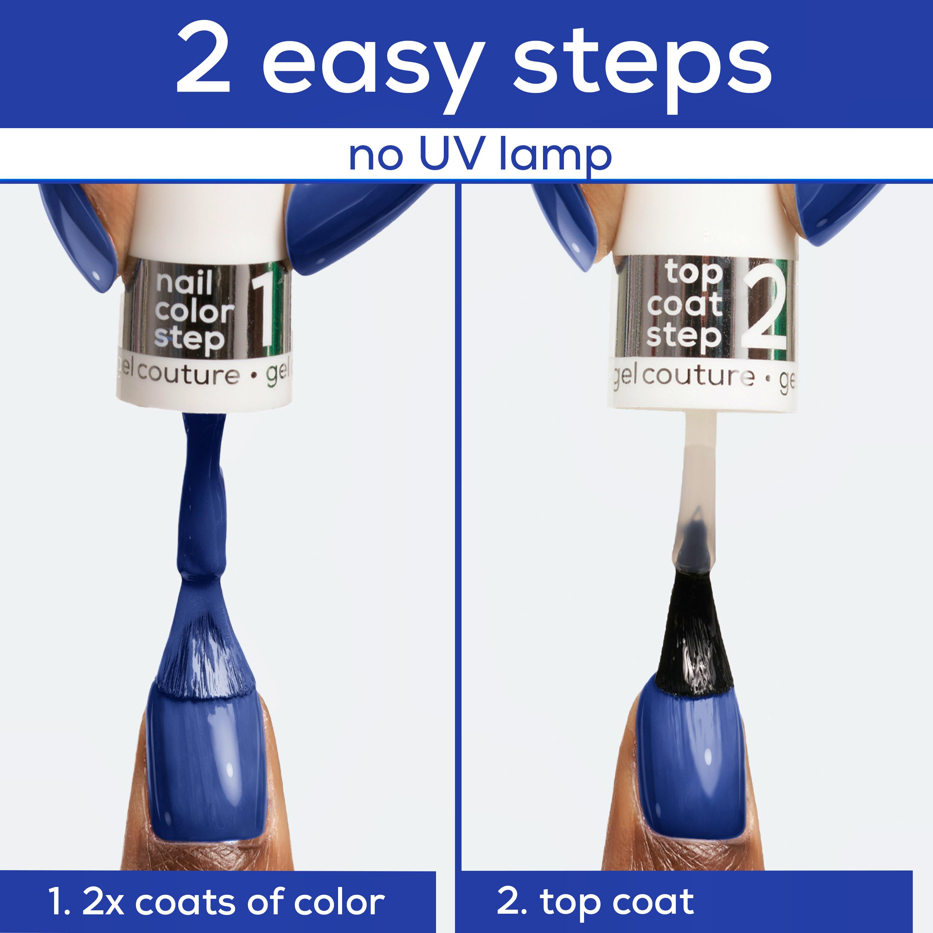 Achieving a professional-looking gel manicure at home has never been easier. Simply apply two coats of the Gel Couture color for that ultra-durable, long-lasting look, followed by a single coat of the Gel Couture top coat to seal in the shine and create a protective barrier that extends the life of your manicure. The best part? No UV lamp is needed, and when you're ready for a change, removal is as straightforward as any regular nail polish. Just use your preferred nail polish remover, with or without acetone, and you're ready to start fresh.