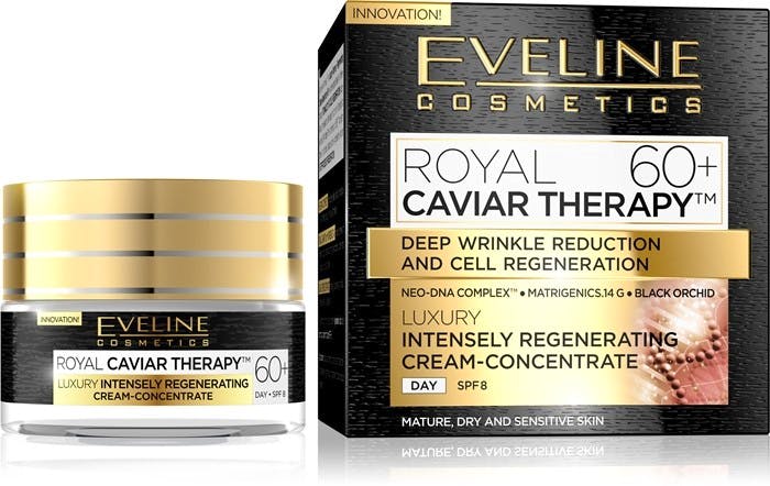 The Royal Caviar Therapy Regenerating Day Cream 60+ SPF8 from Eveline is a luxurious day cream specially designed for women over 60 years old.