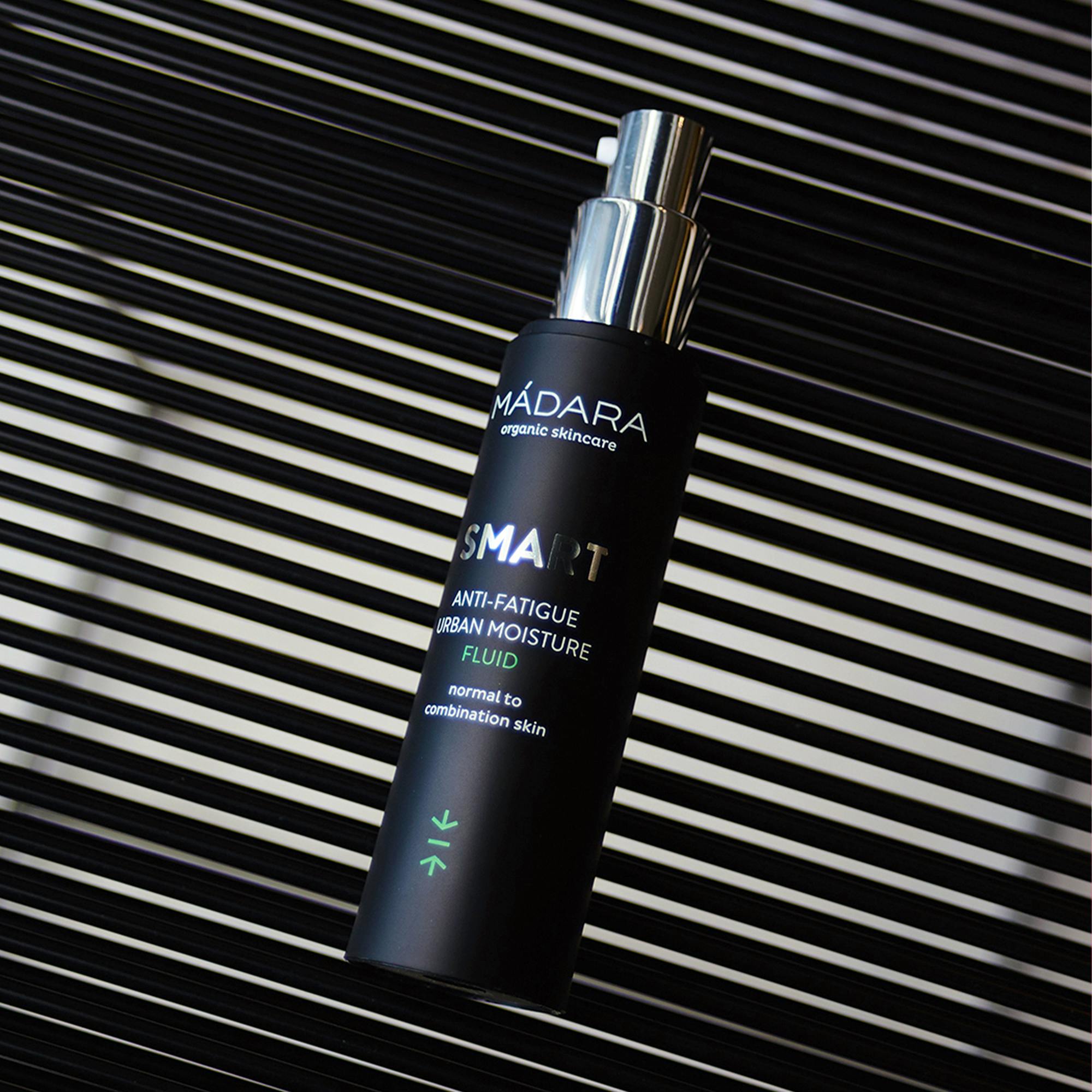 The Smart Anti-Fatigue Urban Moisture Fluid from MÁDARA is an amazing product designed to combat signs of fatigue and moisturize the skin.