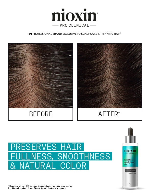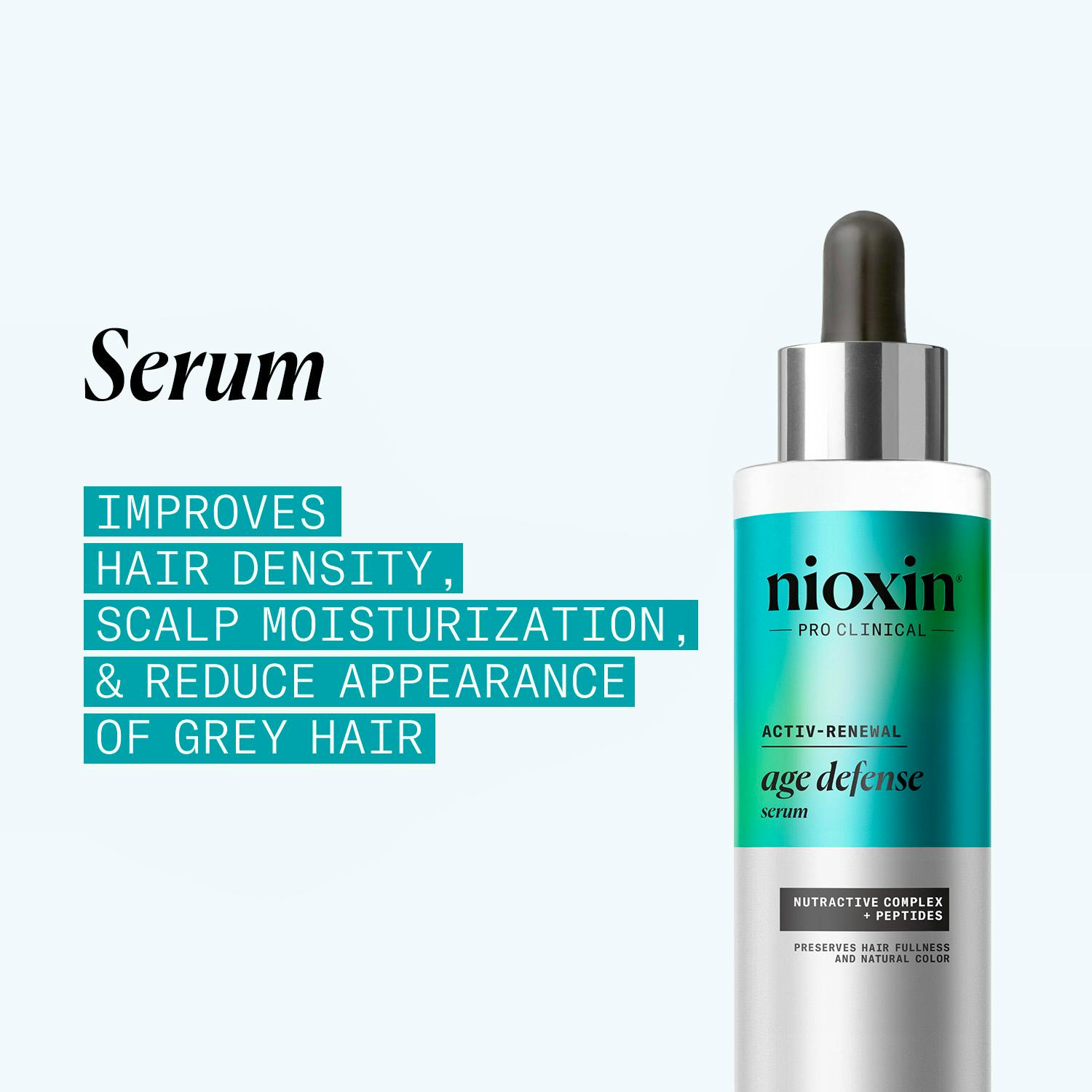 Revitalize your scalp and fight early greying hair with the Nioxin Age Defense Serum, the ultimate anti-aging hair serum for maintaining your hair’s fullness, smoothness, and natural color.