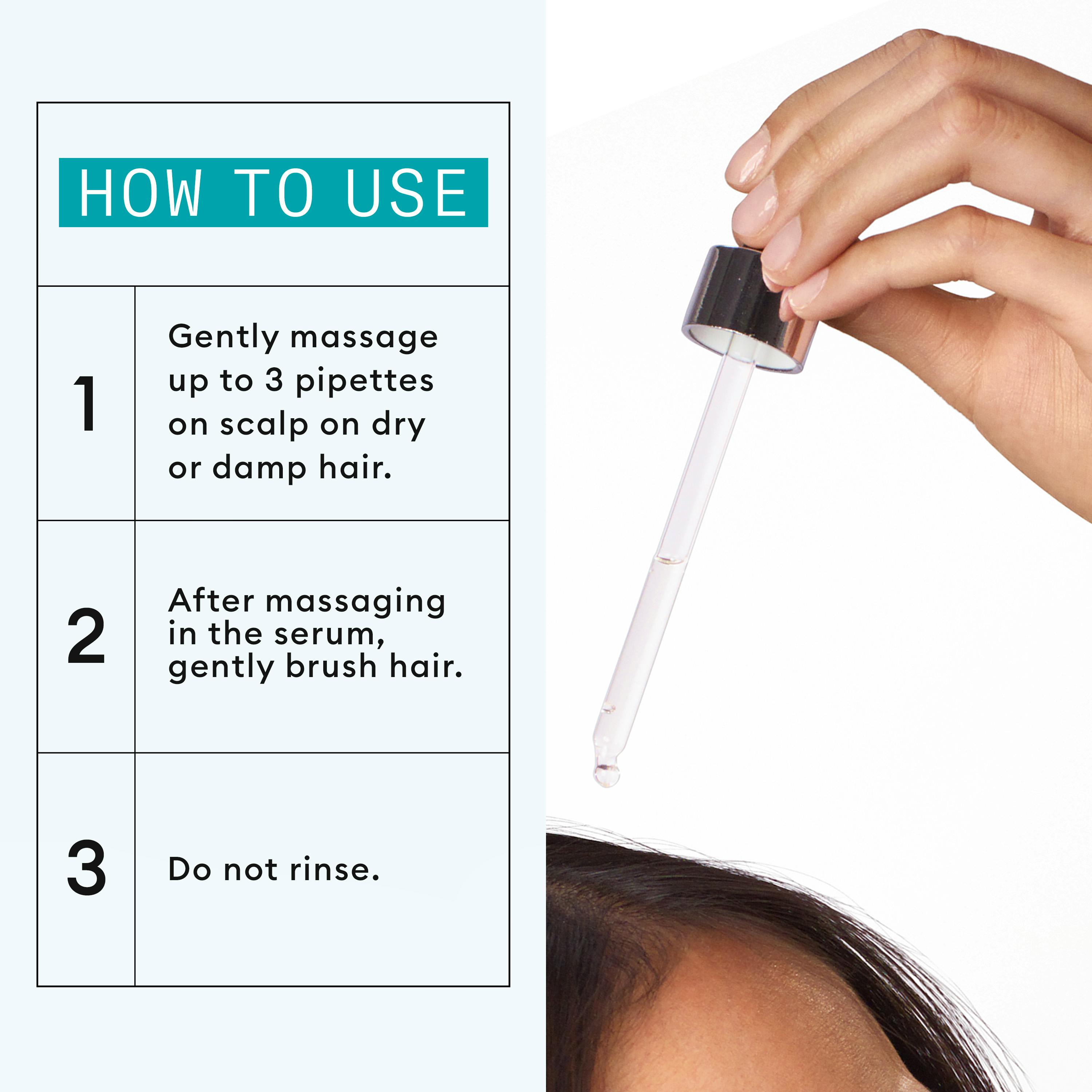 How to Use: Apply up to 3 pipettes directly onto scalp daily. Massage gently and brush through hair. Do not rinse.