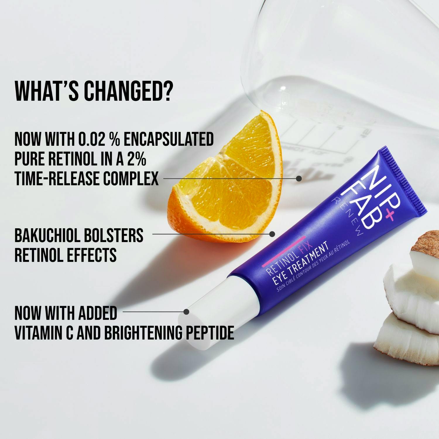 KEY INGREDIENTS • 2% Lipodisq Retinol • Bakuchiol, a plant-based antioxidant similar to retinol, offering gentle smoothing benefits • Brightening Peptide improves skin tone and reduces dark circles under the eyes