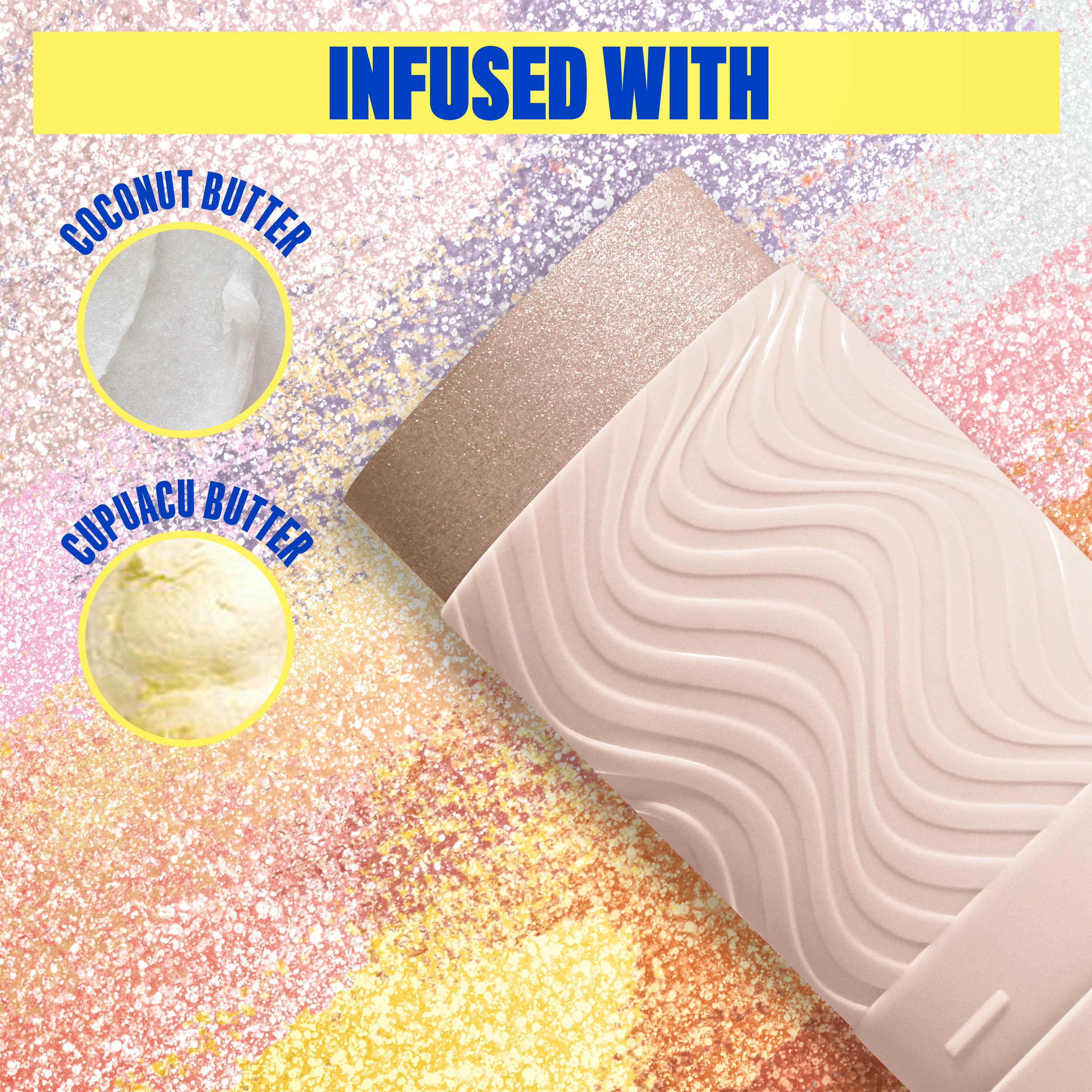 Everything is better with BUTTA! Our NYX Professional Makeup Buttermelt Glow Boosting Highlighter Stixs delivers a buttery smooth highlight to "butta glow" from head to toe. Infused with nourishing cupuacu and coconut butter, this stix provides a moisture-rich base for a seamless, creamy glide that melts right into your skin. Achieve an ultimate all-glaze glow without chunky glitter, perfect for illuminating high points of the face, layering for an all-over melty glaze on collarbones, arms, and legs. Get that butta soft feel, butta melty look, and butta glaze glow.