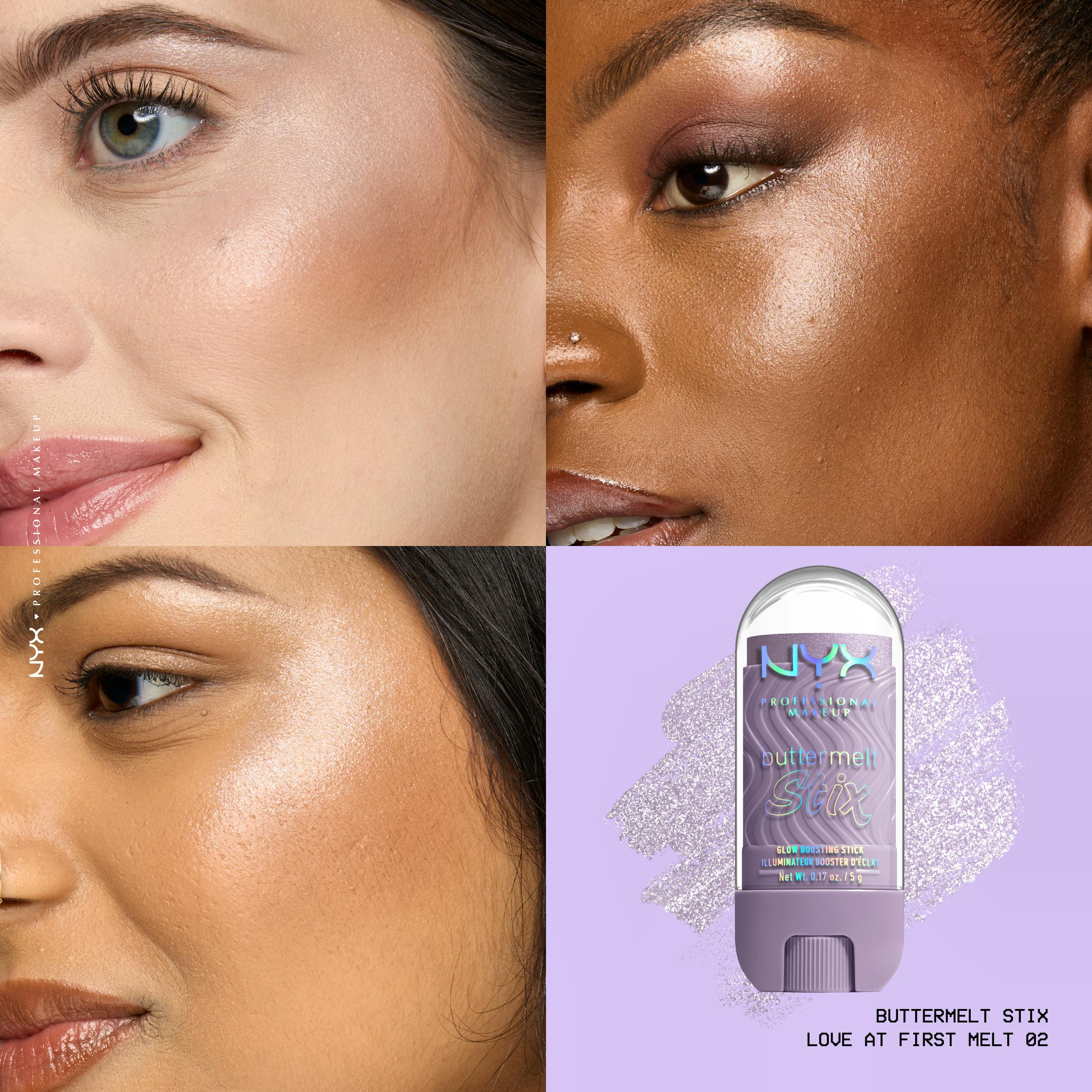 Everything is better with BUTTA! Our NYX Professional Makeup Buttermelt Glow Boosting Highlighter Stixs delivers a buttery smooth highlight to "butta glow" from head to toe. Infused with nourishing cupuacu and coconut butter, this stix provides a moisture-rich base for a seamless, creamy glide that melts right into your skin. Achieve an ultimate all-glaze glow without chunky glitter, perfect for illuminating high points of the face, layering for an all-over melty glaze on collarbones, arms, and legs. Get that butta soft feel, butta melty look, and butta glaze glow.