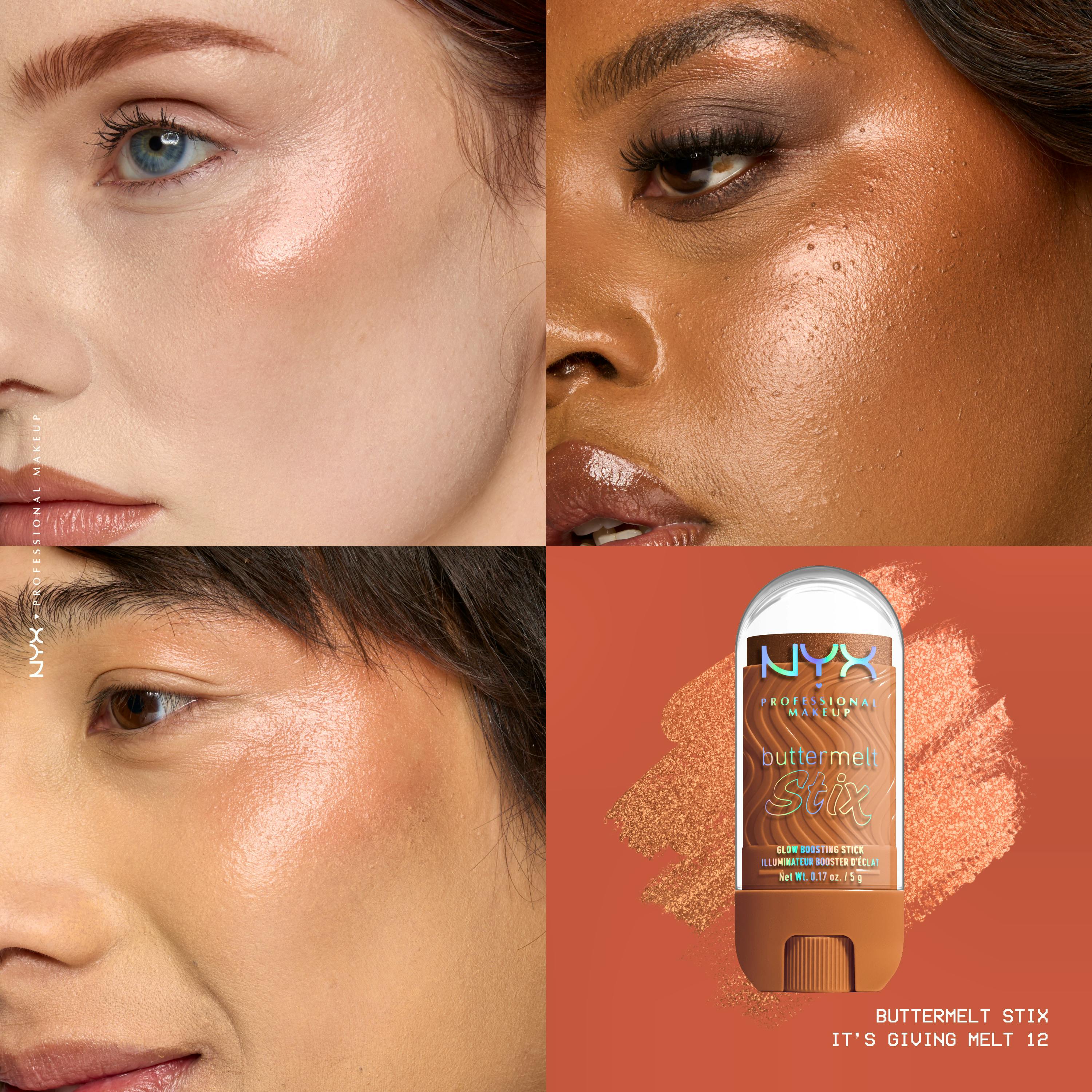 Everything is better with BUTTA! Our NYX Professional Makeup Buttermelt Glow Boosting Highlighter Stixs delivers a buttery smooth highlight to "butta glow" from head to toe. Infused with nourishing cupuacu and coconut butter, this stix provides a moisture-rich base for a seamless, creamy glide that melts right into your skin. Achieve an ultimate all-glaze glow without chunky glitter, perfect for illuminating high points of the face, layering for an all-over melty glaze on collarbones, arms, and legs. Get that butta soft feel, butta melty look, and butta glaze glow.