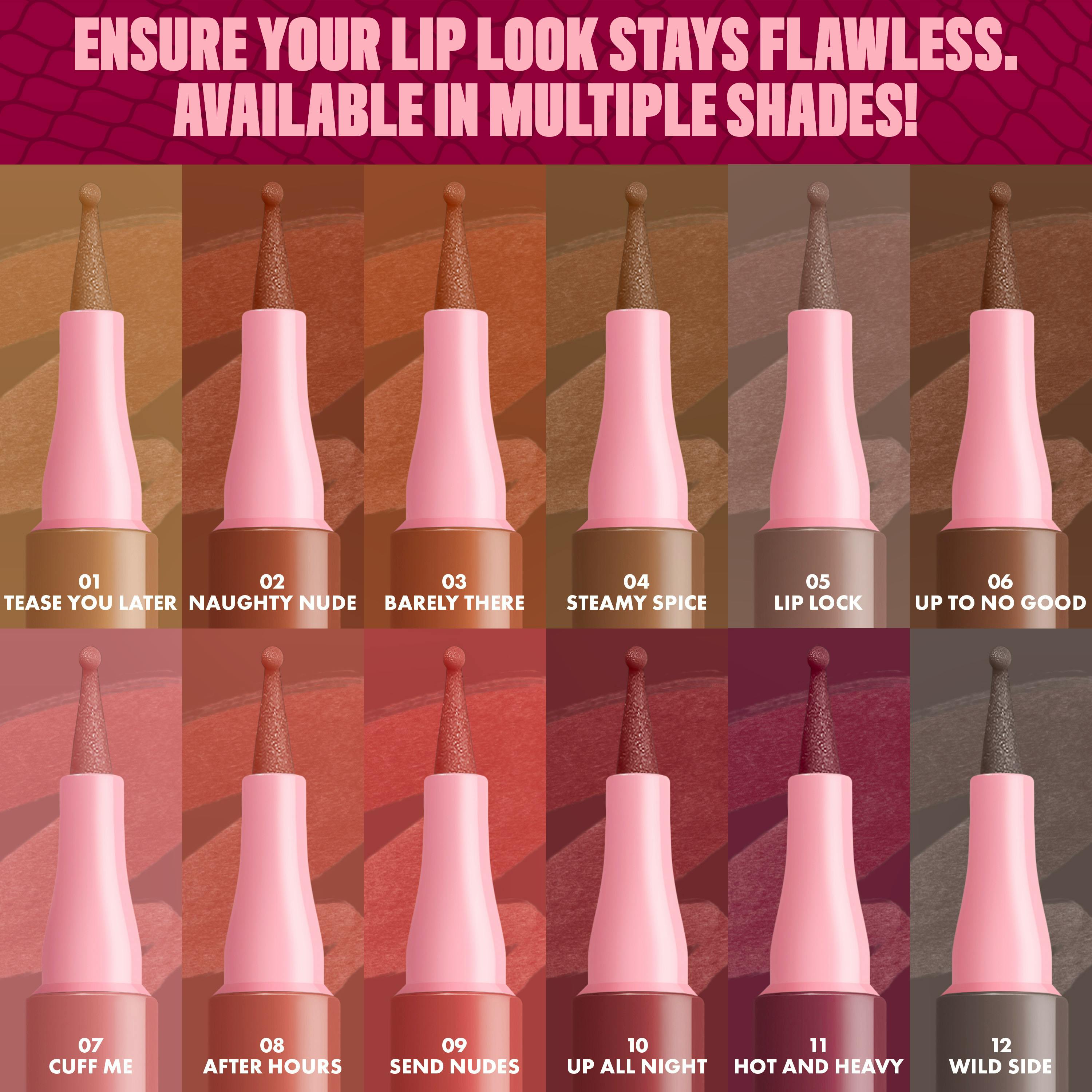 Line, contour, or fill your lips for sculpted pushed-up lip looks. Designed with a ballpoint felt tip for a seamless glide and perky precision for versatile application.