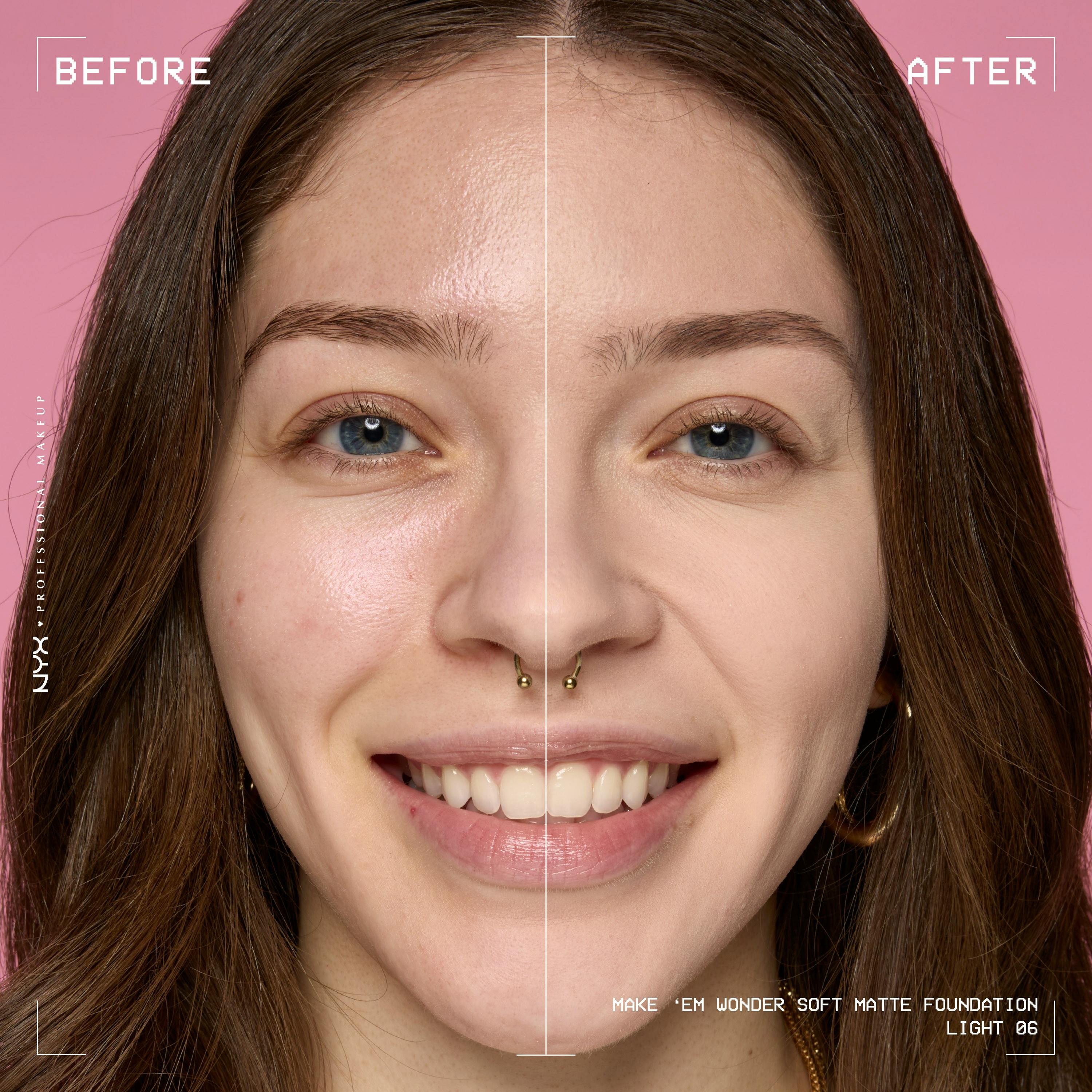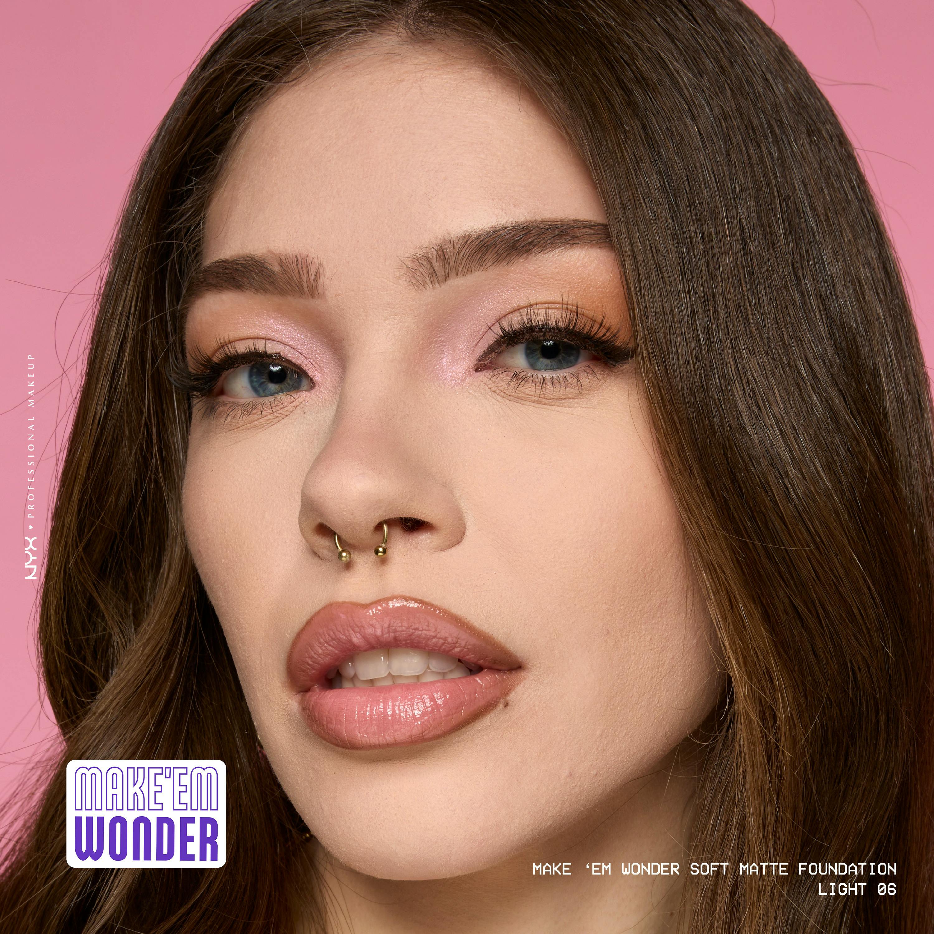 MAKE 'EM WONDER if it's foundation or if it's just your skin with this soft matte, buildable formula. NYX Professional Makeup Make'em Wonder foundation is infused with skincare ingredients that covers everything, yet feels weightless on the skin, providing all-day wear that looks like real skin – only smoother, more even, and brighter. Infused with Guarana Extract, and Hyaluronic Acid for instant hydration and a non-cakey feel. It's a buildable formula, allowing you to create any look, from the perfect no-makeup makeup to full glam. This foundation delivers: it's fade- and transfer-resistant, sweat-resistant, waterproof, and provides all-day shine control.