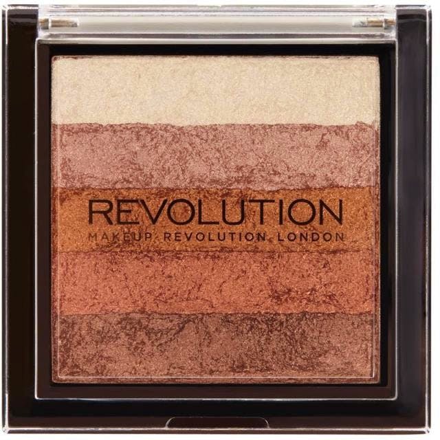 Revolution Vivid Shimmer Brick Bronze Kiss is a compact containing five complimentary shades of bronzers and highlighters to give you a beautiful, natural, warm glow.