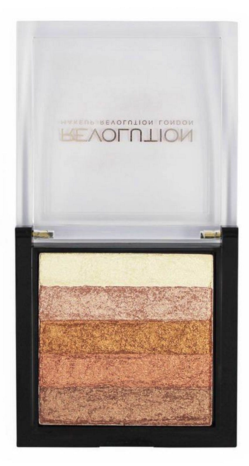 Revolution Vivid Shimmer Brick Rose Gold is a compact containing five complimentary coppery shades of bronzers and highlighters to give you a beautifully bronzed glow.