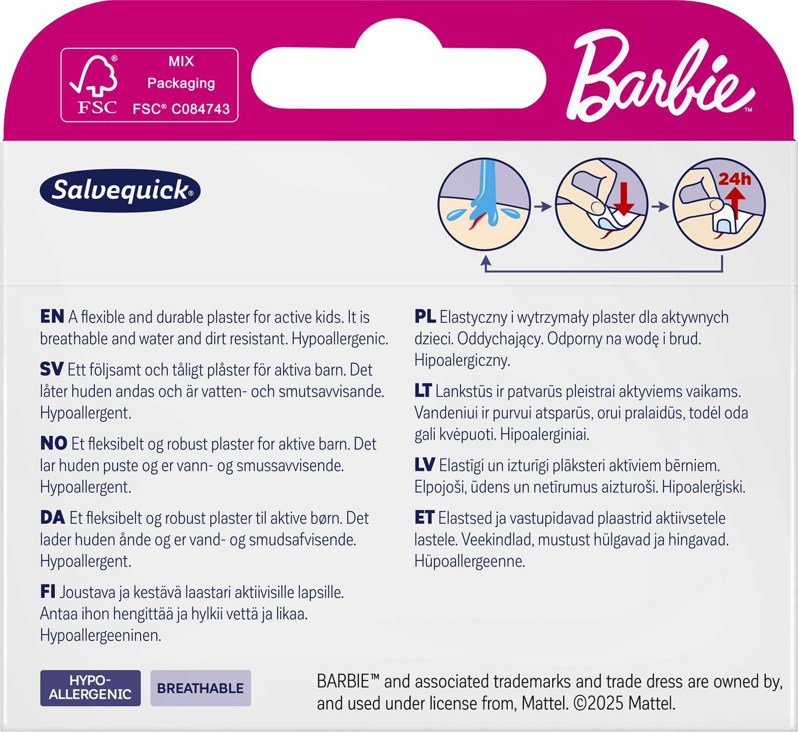 Salvequick Barbie Bandaids Plasters 14 pcs.
