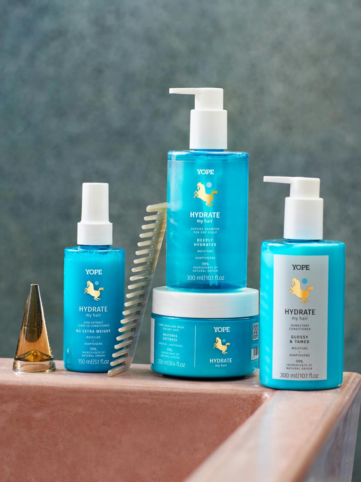 YOPE PRODUCTS COMPLEMENT EACH OTHER Depending on the needs of your hair and scalp, you can create your own ritual by combining products from the HYDRATE, BOOST, and BALANCE series.